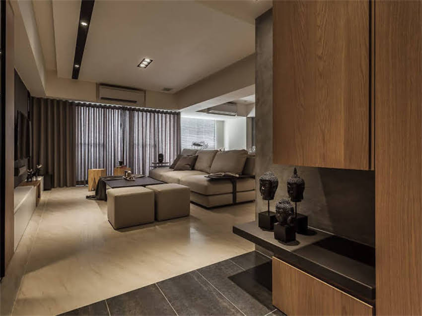– 核心特征:实木元素+对称布局